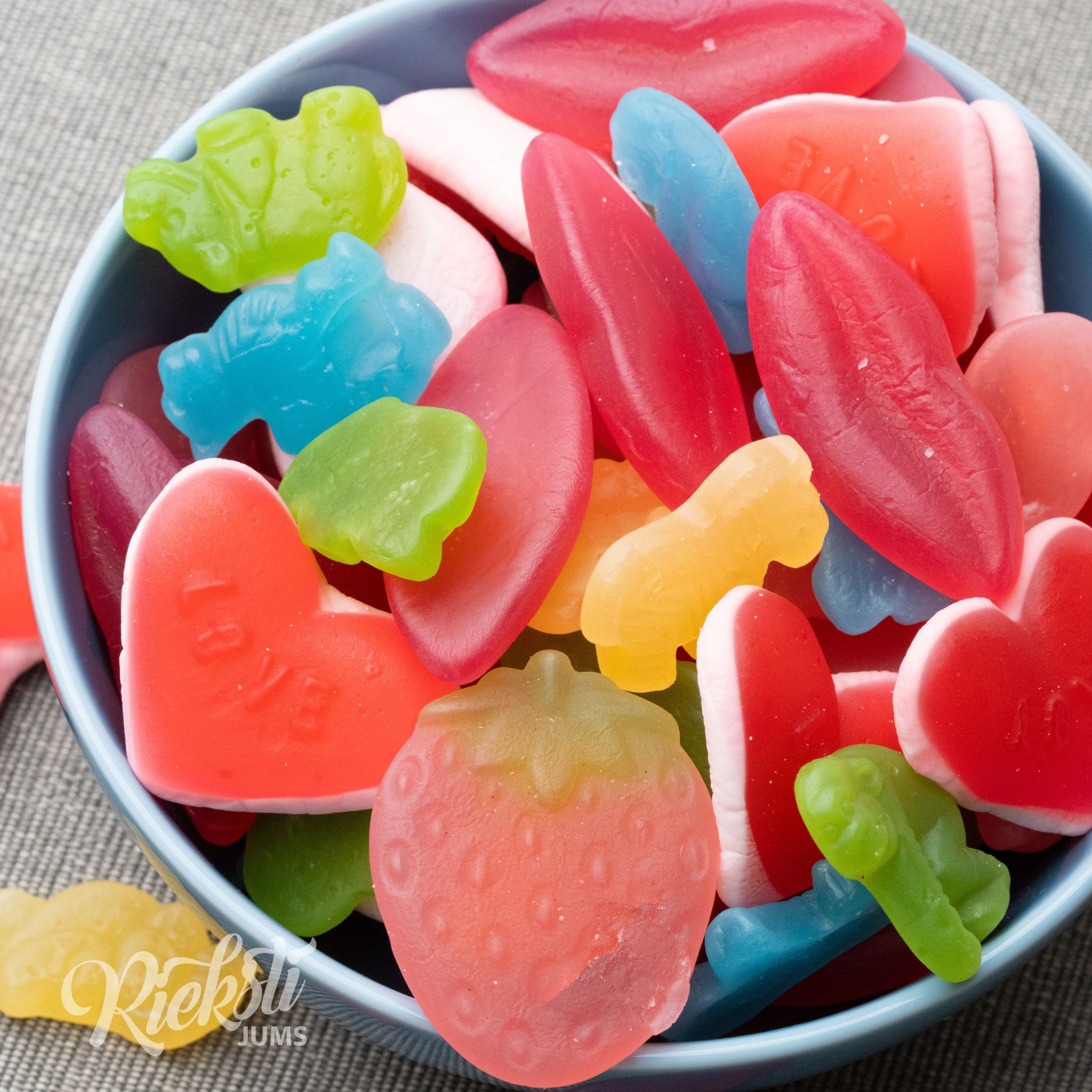 Sastāvdaļas: cukurs, glikozes–fruktozes sīrups, glikozes sīrups, kviešu ciete, modificēta kartupeļu ciete, modificēta kukurūzas ciete, ūdens, skābuma regulētāji: (E270, E296, E330, E331), želatīns, aromatizētāji, krāsvielas: (E141, E120, E100, E132, E160a), augu eļļas (palmu, kokosriekstu, rapšu), pārklāšanas līdzekļi: (karnaubas vasks, bišu vasks), koncentrāts (melnās jāņogas, melnās burkāni, burkāni, spirulīna, saflora), pienskābe (E270). Satur glutēnu un pienu. Uzglabāt sausā, tīrā un vēsā vietā. Uzglabāšanas temperatūra: no 10°C līdz 20°C
